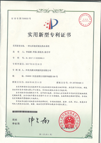 實(shí)用新型專利證書--一種太陽能采暖及熱水系統(tǒng)(2)