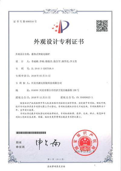 外觀設(shè)計(jì)專利證書--蓄熱式智能電鍋爐