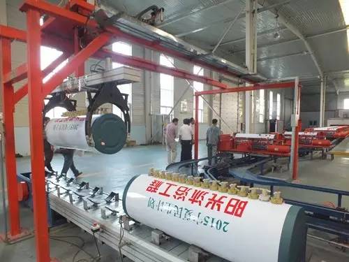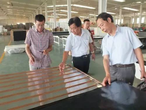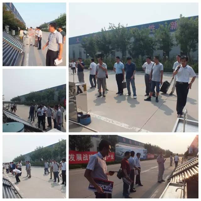 在參觀完太陽能真空集熱管制造車間后又到了太陽能工程設(shè)備總裝車間,先后參觀了全自動下料開平設(shè)備、轉(zhuǎn)塔式全自動數(shù)控沖床生產(chǎn)線、全自動外皮雙頭縮口滾花機、臥式反向積放發(fā)泡生產(chǎn)線、環(huán)戊烷聚氨酯高壓發(fā)泡機、全自動數(shù)控打包生產(chǎn)線以及壁掛太陽能生產(chǎn)線等等。