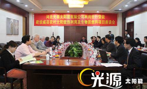 識別團一行在河北省發(fā)改委外資處副處長史海峰、河北省財政廳涉外處副處長何貴滿、河北省新能源技術(shù)推廣站副主任王香雪及市直有關(guān)部門負(fù)責(zé)人的陪同下實地考察了光源公司威縣農(nóng)村太陽能熱利用及生物質(zhì)燃料項目。通過考察了解了太陽能采暖、太陽能熱開水系統(tǒng)的工作原理、項目周邊環(huán)境及使用情況,并對項目的具體情況展開了座談討論。光源公司副總經(jīng)理邵東坤就光源公司的基本概況、經(jīng)營情況以及世行貸款項目概況向識別團進行了匯報,識別團針對項目的建設(shè)內(nèi)容、開發(fā)潛力、市場風(fēng)險等問題進行了提問和討論。