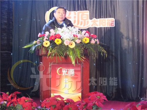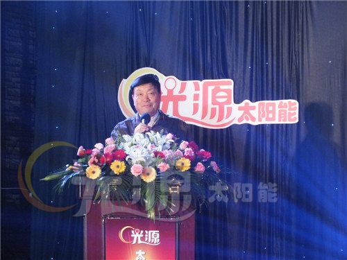 首先,12月6日上午9:30,光源年會隆重開幕。在年會上,中國太陽能熱利用產(chǎn)業(yè)聯(lián)盟副理事長、中國太陽能熱利用產(chǎn)業(yè)協(xié)會副理事長、河北光源太陽能科技有限公司董事長李成彬致辭。他代表光源公司對各位領(lǐng)導(dǎo)、專家、經(jīng)銷商朋友的到來表示熱烈歡迎和衷心感謝,對光源2014年取得的成績和2015年發(fā)展方向進(jìn)行了總結(jié)和展望。李成彬指出,2014年是光源發(fā)展史上不平凡的一年,在國內(nèi)經(jīng)濟(jì)增速放緩的大背景下,太陽能光熱行業(yè)也受到極大影響。但光源勇敢拼搏、堅(jiān)定信念,以市場為導(dǎo)向,以銷售為龍頭,產(chǎn)量雖然相比去年有所下滑,然而,我們依然對太陽能光熱行業(yè)的發(fā)展前景充滿信心,相信太陽能光熱的春天一定還會到來。行業(yè)領(lǐng)導(dǎo)羅振濤、霍志臣、張曉黎、賈鐵鷹、楊桂元先后講話。在講話中,領(lǐng)導(dǎo)們肯定了光源跨越發(fā)展、科技創(chuàng)新取得的喜人成績,肯定了光源在全國同行業(yè)中的地位和作用,對光源未來發(fā)展提出了指導(dǎo)性意見。光源公司總經(jīng)理劉迎波在講話中詳細(xì)分析了光源公司面對的市場形勢,他說,光源公司在今后的發(fā)展道路上要審時度勢,及時調(diào)整經(jīng)營戰(zhàn)略和營銷政策,做精做細(xì)終端市場,和廣大經(jīng)銷商一起,打造符合光源特點(diǎn)的企業(yè)發(fā)展之路。