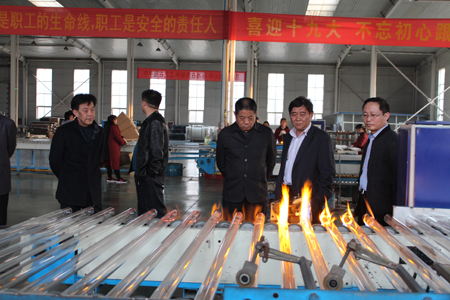 參觀公司壁掛爐車間 周寶戰(zhàn)(右一)