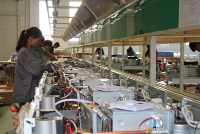 生產(chǎn)車間:不斷改進(jìn)工藝,合理安排人員,逐步提高生產(chǎn)效率,電鍋爐日生產(chǎn)能力由150臺提高到了400臺。壁掛爐日產(chǎn)可達(dá)300臺。