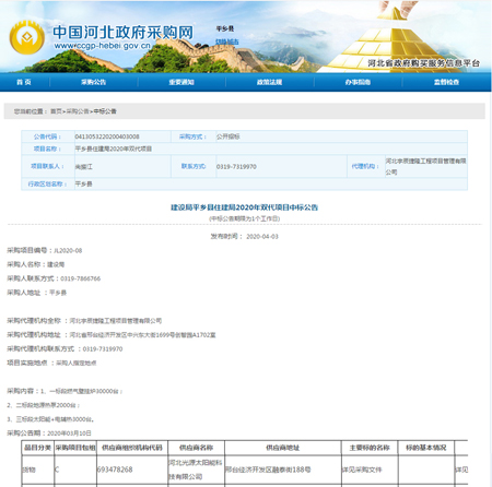平鄉(xiāng)縣住建局2020年雙代項(xiàng)目中標(biāo)