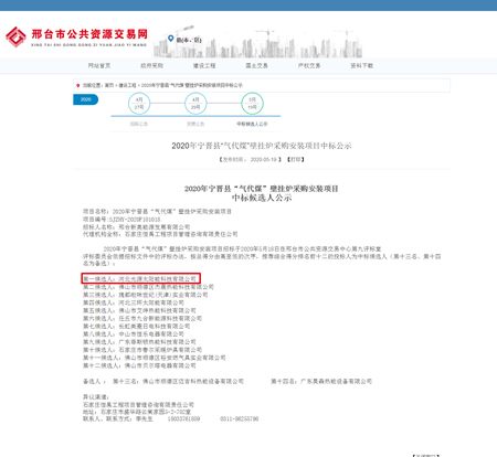 "煤改氣"是當(dāng)下我國政府在改善空氣質(zhì)量的民生重點工程,各地區(qū)政府在項目招投標(biāo)的過程中對產(chǎn)品能效、品牌實力和售后服務(wù)進行嚴格篩選,只有在市場表現(xiàn)上品質(zhì)最可靠、運行最穩(wěn)定、服務(wù)最專業(yè)的產(chǎn)品方能入圍。光源公司在2020年寧晉縣“氣代煤”壁掛爐采購安裝項目招標(biāo)中以第一候選人:河北光源太陽能科技有限公司優(yōu)異成績拔得頭籌。
