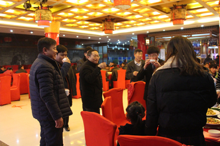 晚會(huì)結(jié)束后,春節(jié)晚宴開始。董事長李成彬、總經(jīng)理劉迎波與公司領(lǐng)導(dǎo)來到員工中間,向員工敬酒,祝賀新年。